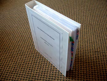 1. Purchase a couple of 2” or 3” ring binders, several clear plastic sleeves, and about 30 stick-on tabs or tab divider pages.